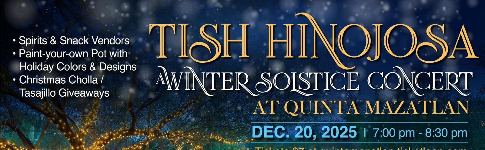 McAllen, TX - Singer-songwriter Tish Hinojosa will perform at Quinta Mazatlán on Saturday, Dec. 20, from 7 to 8:30 p.m. as part of the city’s Concert in the Park series.
