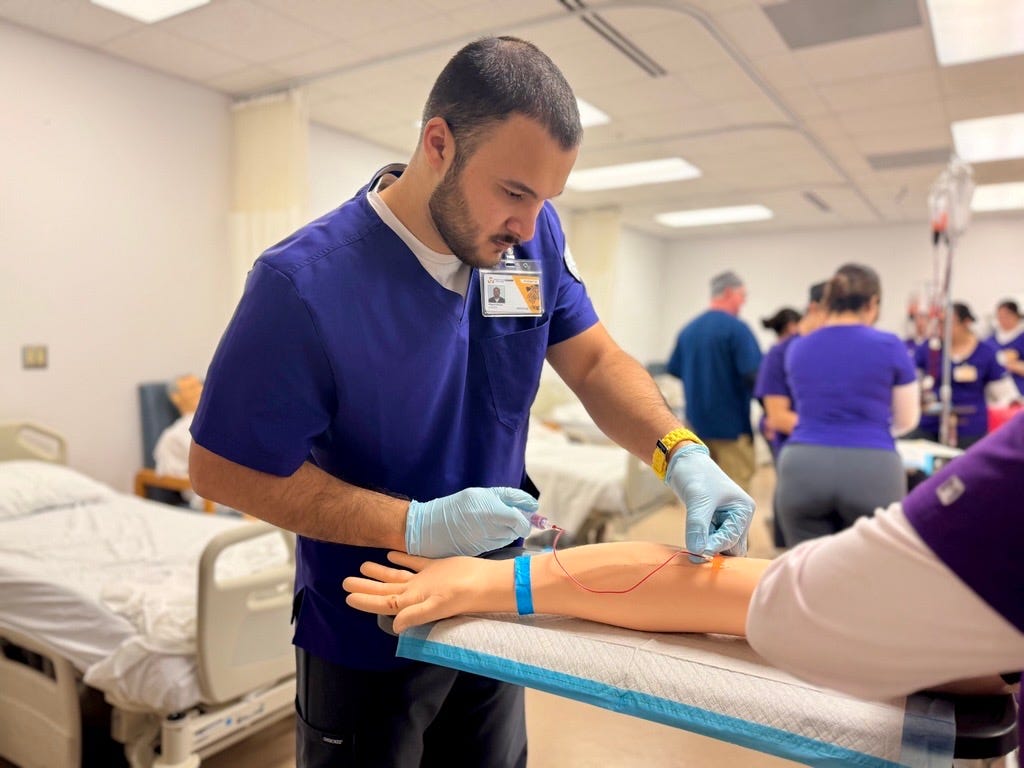 After his service, he turned toward Education, earning a bachelor’s degree in History with plans to become a teacher, before ultimately discovering his interest in health care through his military experience.
